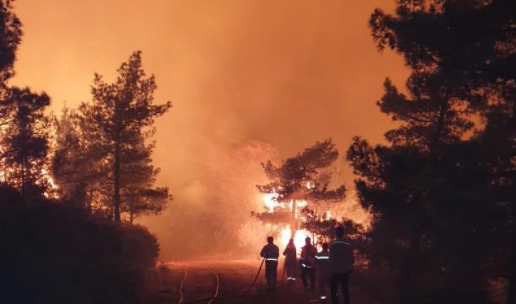 Rüzgarın da etkisiyle büyüyen alevler, kontrol altına alınmaya çalışılıyor.