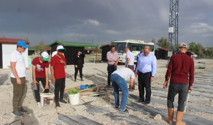 Karapınar Belediye Başkanı Mehmet Yaka uygulamaya katılarak gençlerle birlikte çilek fidesi dikti.