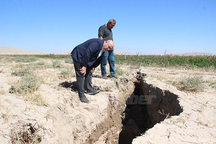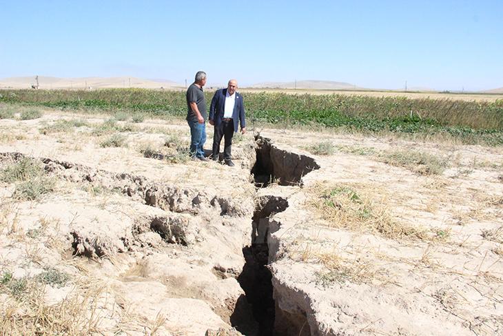 Tarla sahibi Abdurrahman Sever ise, pancar tarlama yağmurlama kurmaya geldiğimde gördüm ki yarık oluşmuş. Bende böyle bir şeyi ilk defa görüyorum. Bu durum karşısında herkes çok şaşırdık. Yeraltı sularının azalması sonucu oluştuğunu düşünüyoruz" diye konuştu.