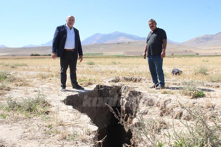 Konya Ovası’nda görülen yüzey yarıkları Karaman’da da oluştu. Bir pancar tarlasında başlayan ve 200 metre uzunluğundaki yüzey yarığının bazı yerlerde derinliği 2 metreyi aşıyor.
