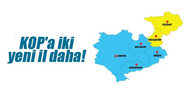 Aksaray, Karaman, Konya, Niğde, Nevşehir, Yozgat illerine Kırşehir ve Kırıkkale de dahil edilerek KOP bölgesel kalkınma sahası genişletildi.