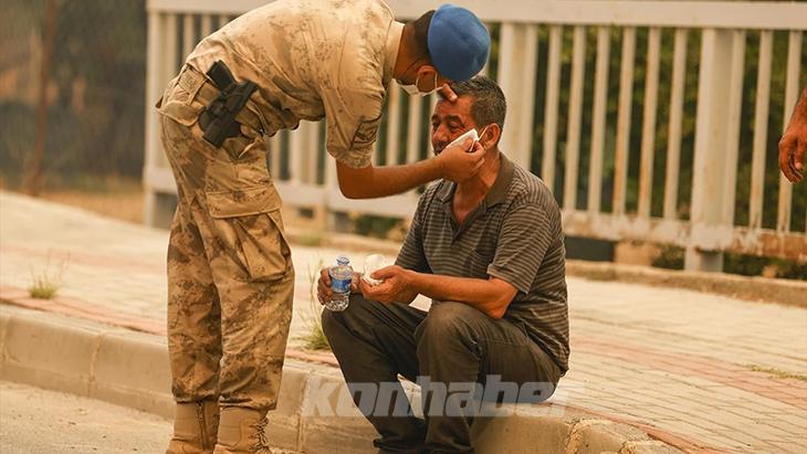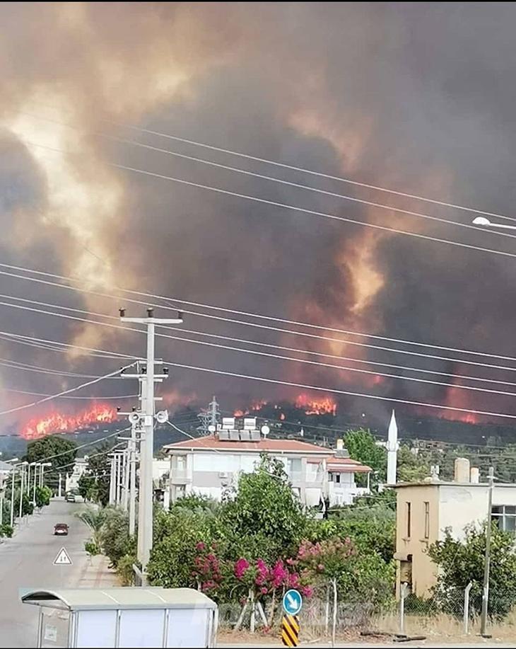 Son yılların en büyük yangını ile karşı karşıya kalan ilçeye 10 ilden 19 helikopter, 9 ilden 412 personel, 9 ilden 103 arazöz ve 2 ilden 6 dozerle müdahale devam ediyor.