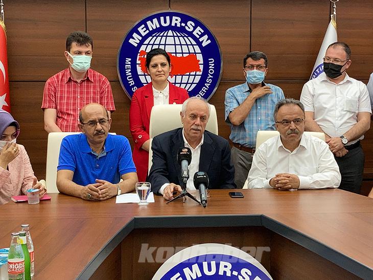 Konya 'da bir araya gelen Memur-Sen Konya İl Temsilciliği ve Eğitim-Bir-Sen Konya 1 Nolu Şube Başkanlığı üyeleri, enflasyon rakamlarının açıklanmasının ardından memur maaşlarına yapılan zammın yetersiz olduğunu savundu.