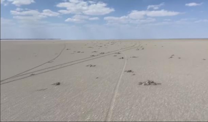 “Ben bu bölgeye en çok gelen insanlardan birisiyim. Bu bölge, flamingolar anlamında ciddi bir şekilde kuş cenneti olarak anılan bir bölgeydi. Fakat bu sene geldiğimde, kuş cennetinden daha çok kuş cehennemine döndüğünü gördüm. Yüzlerce hatta binlerce flamingo bölgede ölmüş şekilde ve ciddi mana da kuş popülasyonu bitmiş şekilde gördüm. Daha önce ben bu bölgeye geldiğimde, bu gördüğünüz alan, sulak bir alandı ama şimdi neredeyse tozan bir nokta haline gelmiş. Su yaklaşık olarak 10 kilometre içe doğru çekilmiş. Bu bölge olarak ciddi bir alarm olduğunu gösteriyor.”