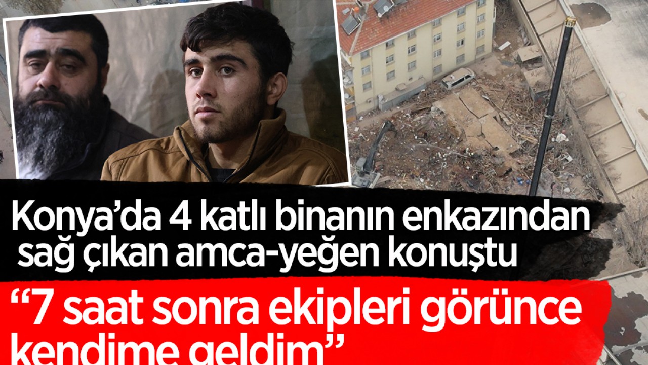 Konya'da 4 katlı binanın enkazından sağ çıkan amca yeğen konuştu: "7 saat sonra ekipleri görünce kendime geldim"