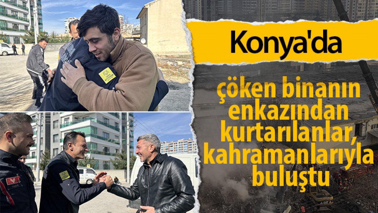 Konya'da çöken binanın enkazından kurtarılanlar, kahramanlarıyla buluştu