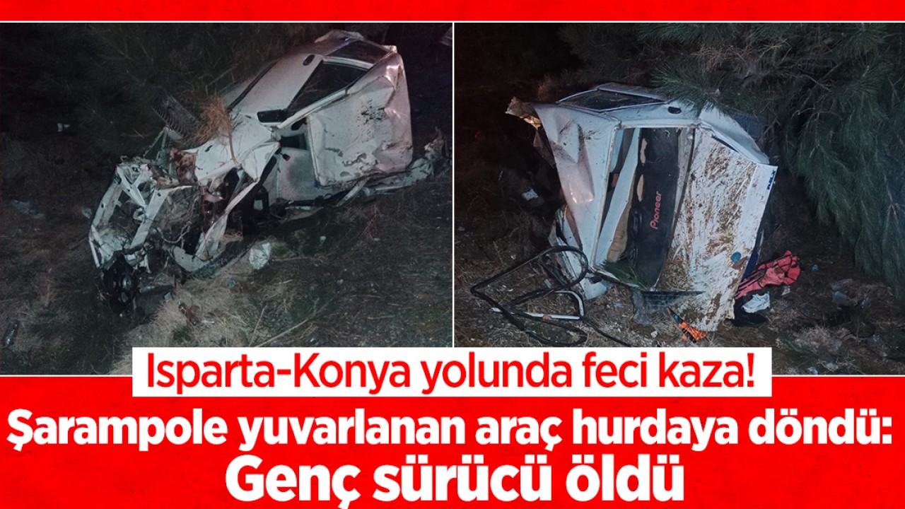 Isparta-Konya yolunda feci kaza! Şarampole yuvarlanan araç hurdaya döndü: Genç sürücü öldü