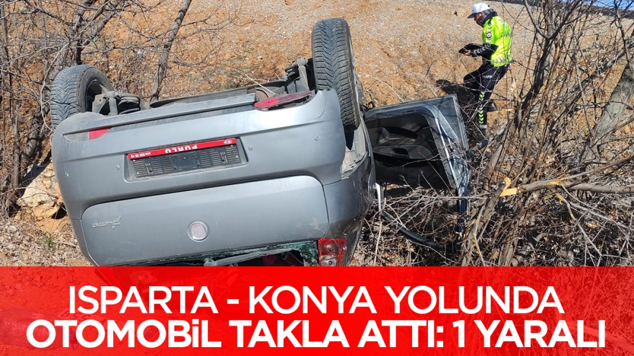 Isparta - Konya yolunda otomobil takla attı: 1 yaralı