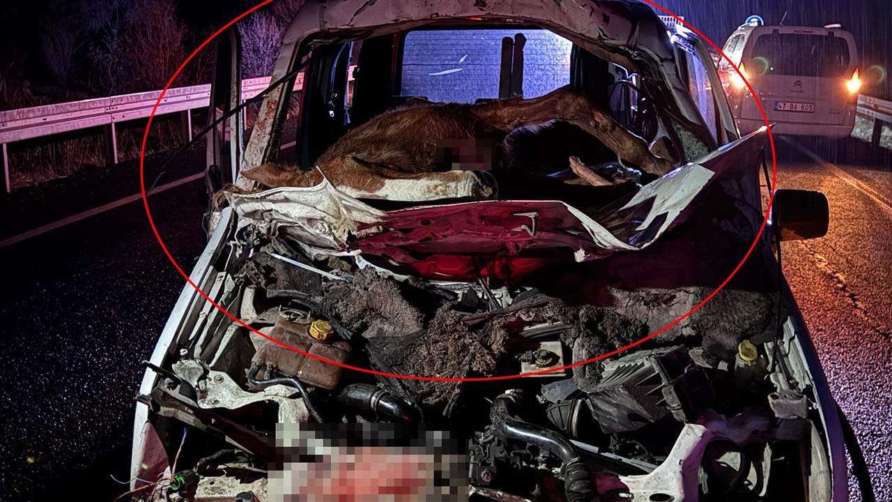 Hafif ticari aracın çarptığı at, ön camdan içeri girdi! Sürücü ağır yaralandı