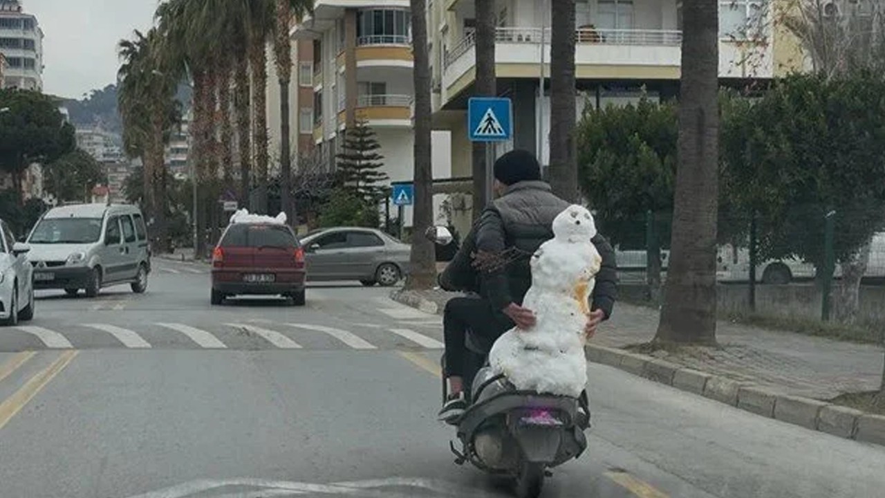 Kardan adamı motosikletle taşıdı! O anlar kamerada
