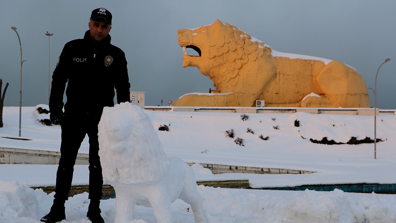 Polis memuru, ‘kar’ı sanata dönüştürüyor