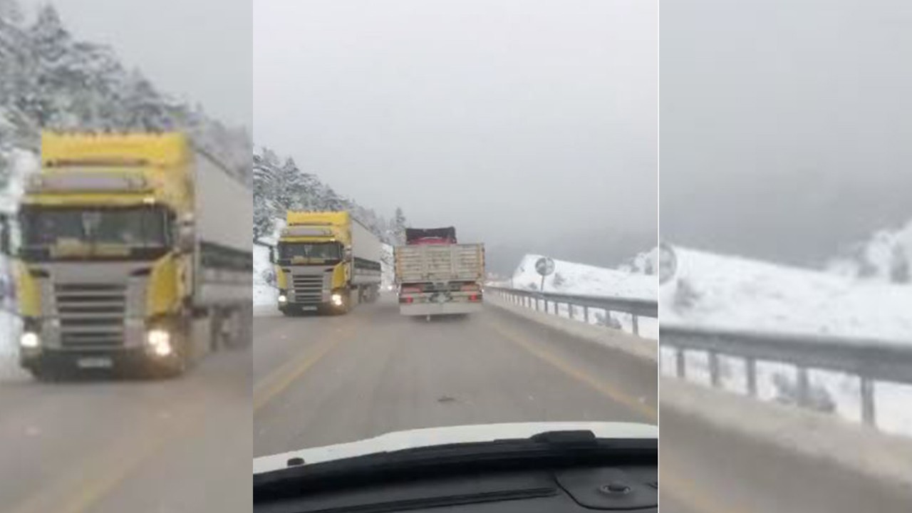 Antalya- Konya yolunda kar yağışı: Bin 825 metre rakımlı Alacabel'de kar kalınlığı 2-3 santimi buldu