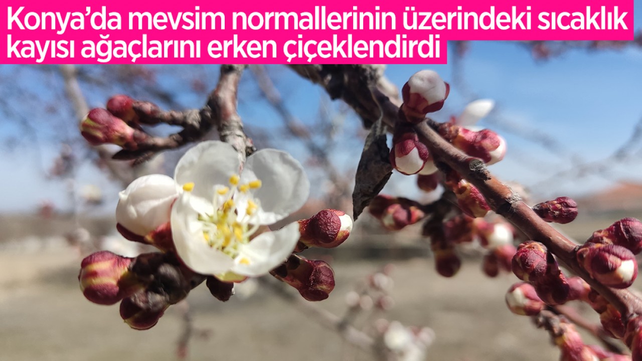 Konya'da mevsim normallerinin üzerindeki sıcaklık kayısı ağaçlarını erken çiçeklendirdi