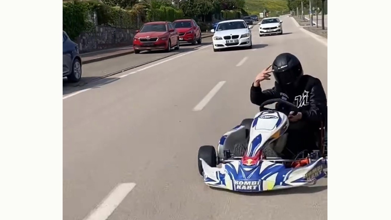 Go kart sürücüsü pisti şaşırdı, trafiğe çıkıp drift attı