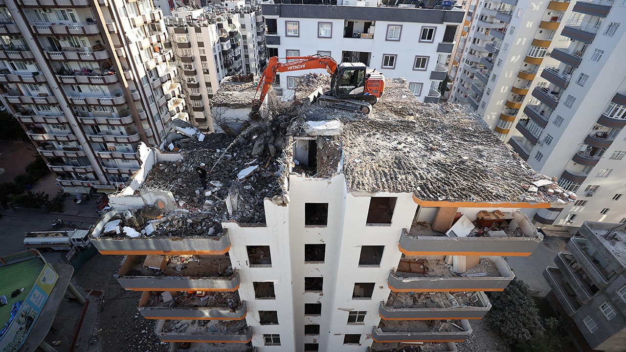 Depremin ardından Sındırgı'da ağır hasarlı binaların yıkımı sürüyor