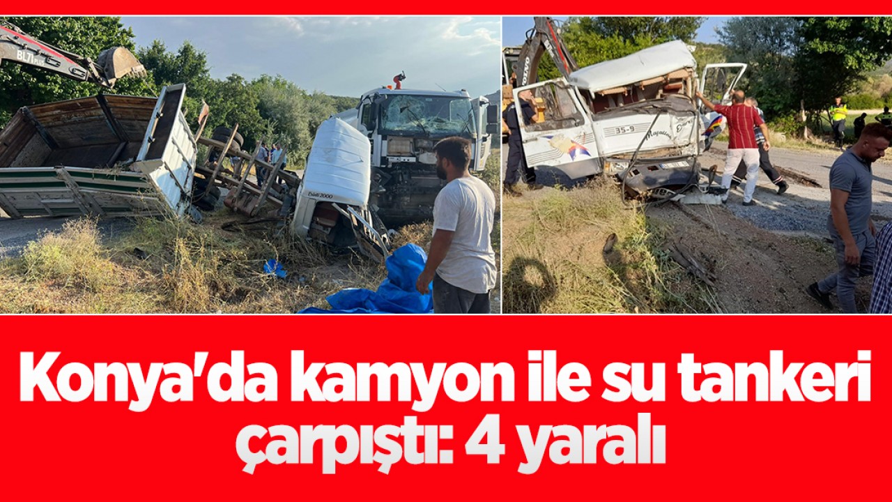 Konya'da kamyon ile su tankeri çarpıştı: 4 yaralı