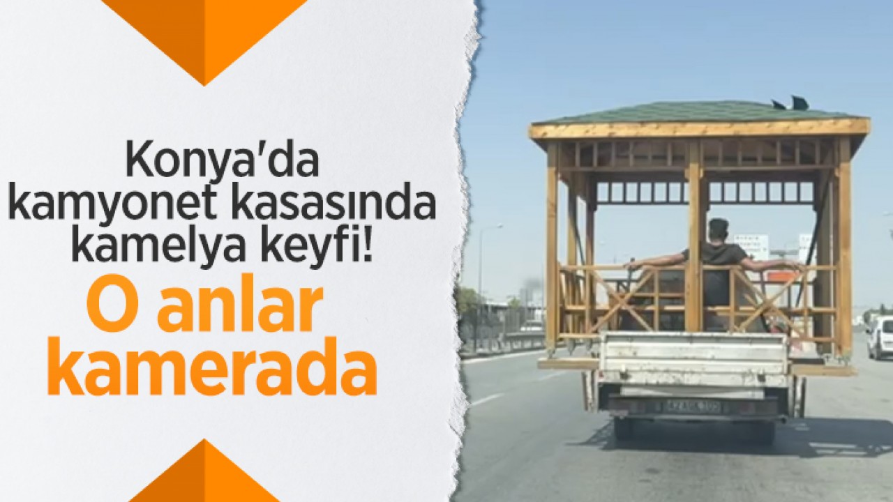 Konya'da kamyonet kasasında kamelya keyfi! O anlar kamerada