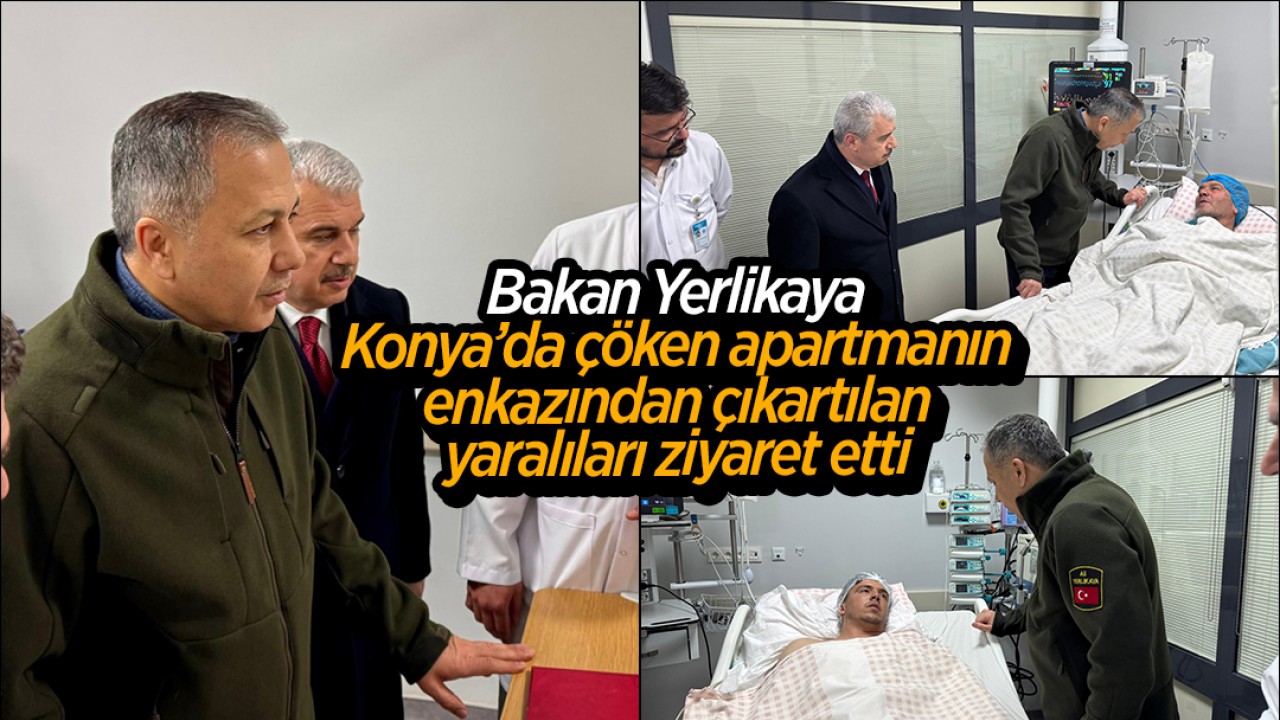 Bakan Yerlikaya, Konya’da çöken apartmanın enkazından çıkartılan yaralıları ziyaret etti