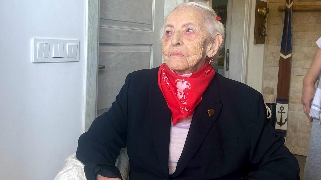 İzmir'in Karaburun ilçesinde Zekiye Sertoğlu (101), tekerlekli sandalye ile geldiği okulda oyunu kullandı.