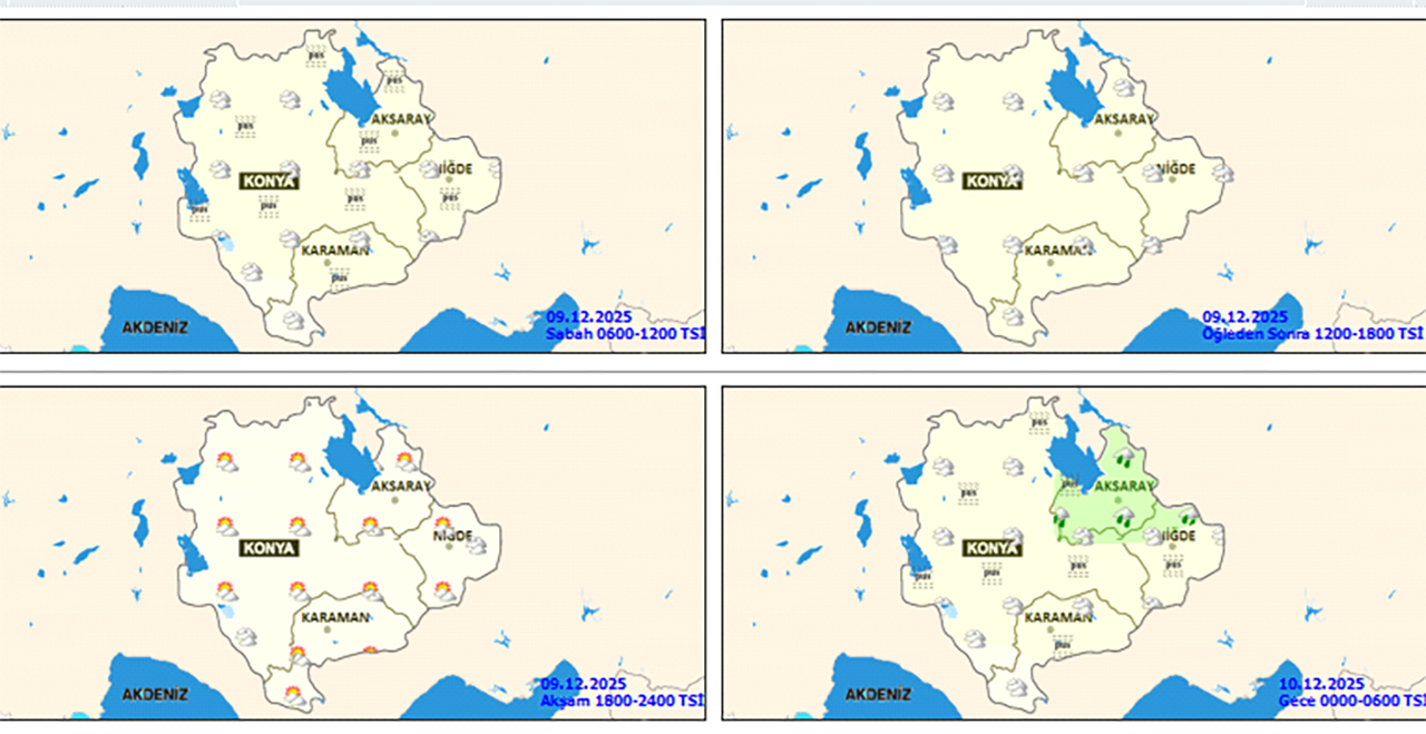 | Karatay | Parçalı ve çok bulutlu | 9 | |
