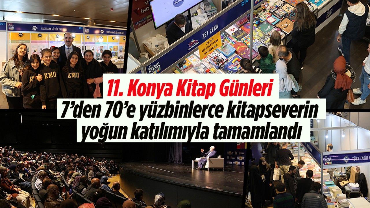 Konya Büyükşehir Belediyesi tarafından düzenlenen 11. Konya Kitap Günleri bu yıl da 7’den 70’e yüzbinlerce kitapseverin yoğun katılımıyla tamamlandı.