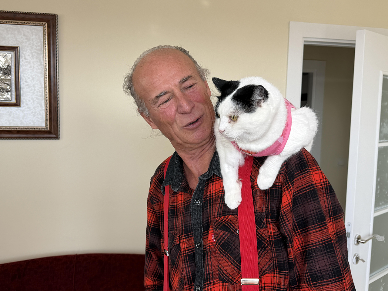 Eskişehir'de 12 yıl önce sokaktan sahiplenerek ‘Sylvia’ adını verdiği kedisini omzunda taşıyan Mustafa Rahmi Erçetin (65), görenlerin ilgisini çekiyor. Özel bir bağ kurduğu kedisiyle bisiklete binip, spor yapan, kafe, restoran ve parklara da gittiklerini söyleyen Erçetin, “Kedimle 65 şehir gezdik, en büyük dileğim Sylvia ile Selanik’e gitmek” dedi.