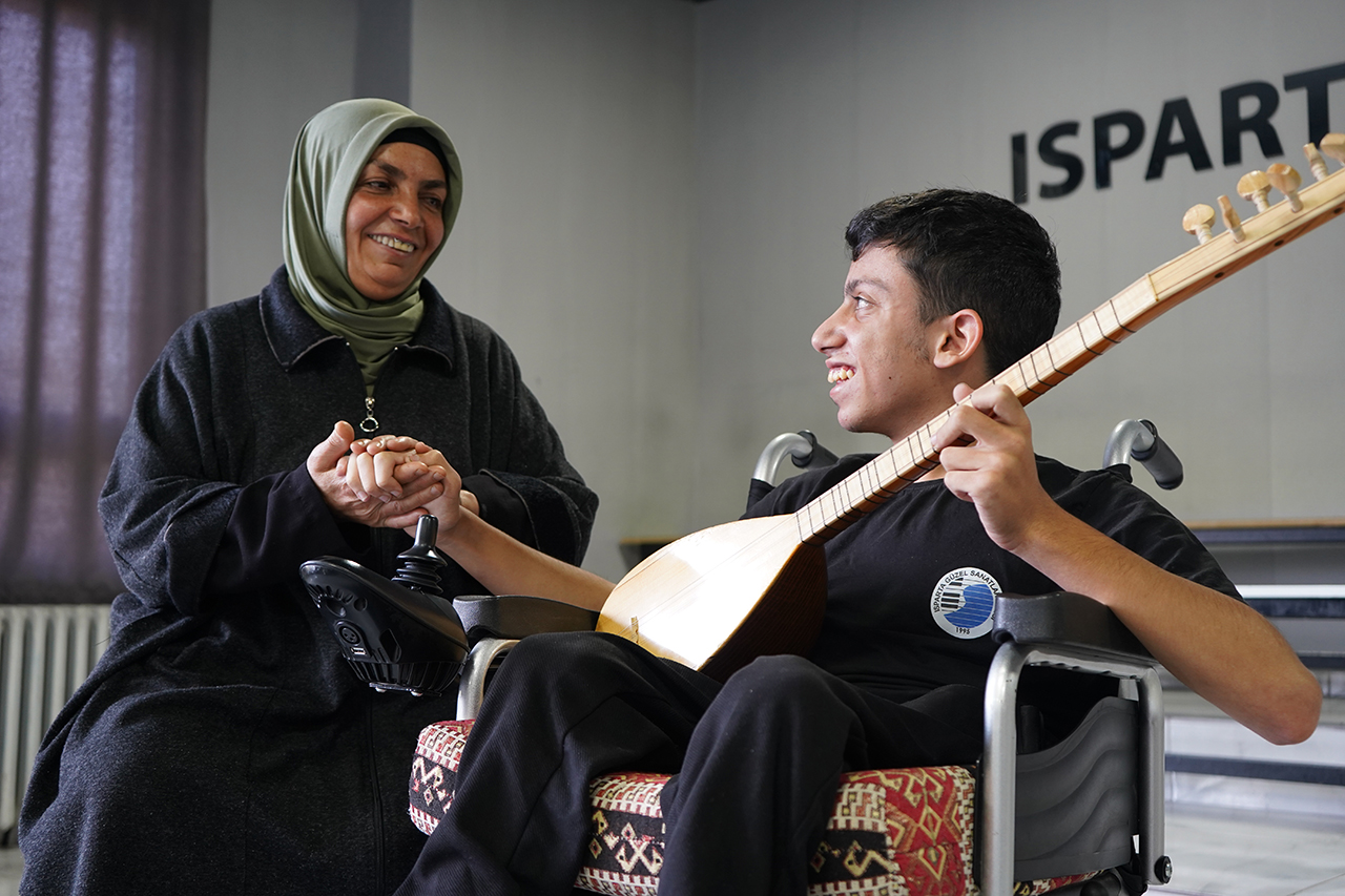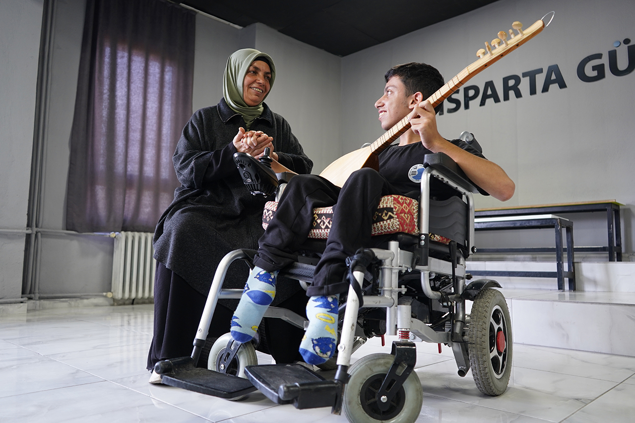 Isparta'da tekerlekli sandalyeyle yaşamını sürdüren 16 yaşındaki Muhammet Eren Agun, unutulmaya yüz tutmuş Yörük çalgılarından cura çalarak çevresine de örnek oluyor.