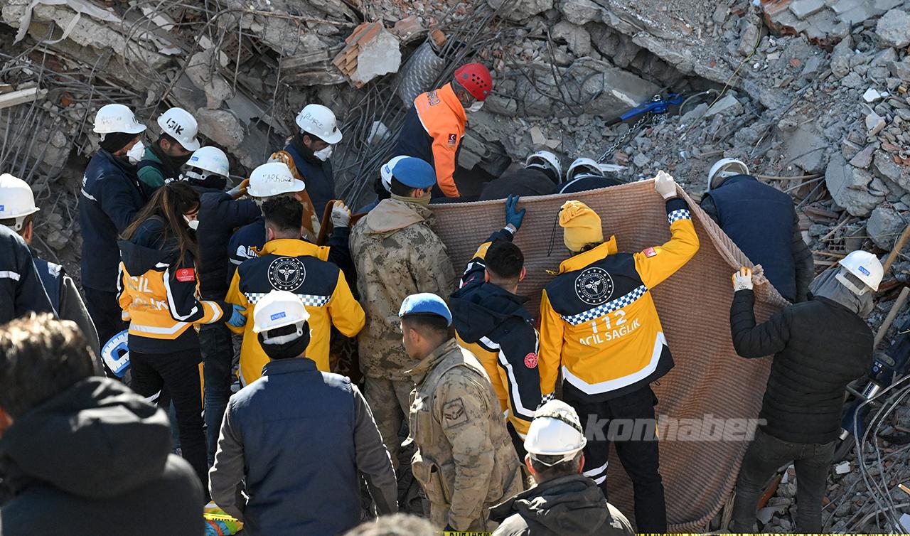 Kahramanmaraş merkezli "asrın felaketi" olarak nitelenen 7,7 ve 7,6 büyüklüğündeki depremlerden etkilenen Adıyaman'da yıkılan binaların enkazlarındaki arama kurtarma çalışmaları sürüyor.