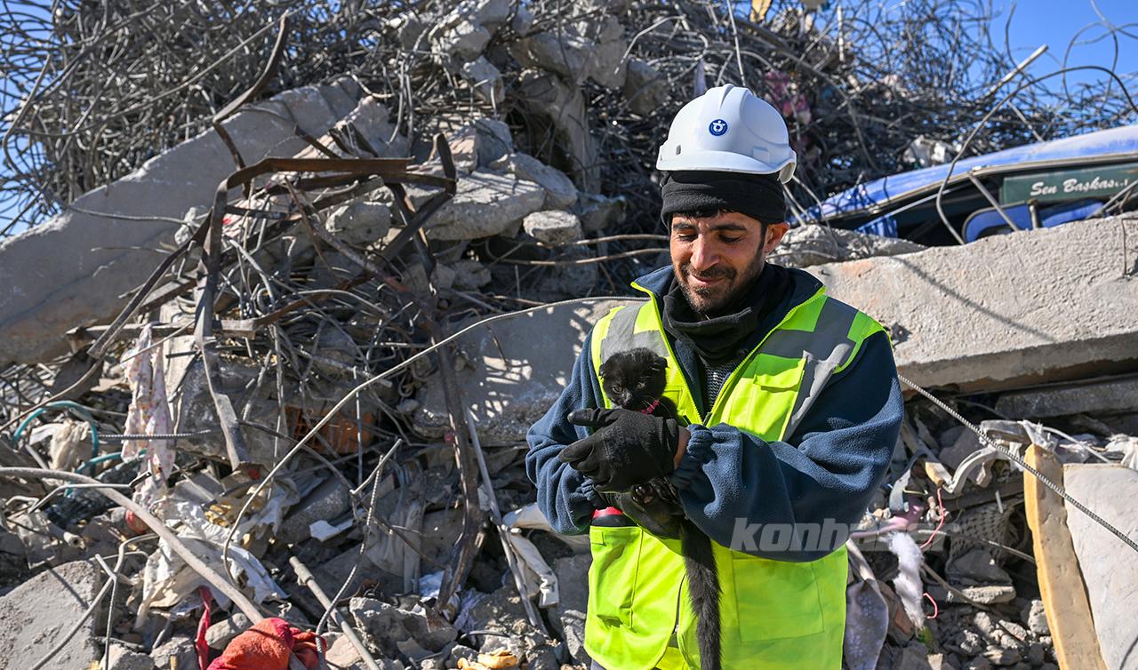 Adıyaman'da arama ve kurtarma ekipleri, yıkılan binanın enkazında 178 saat sonra sağ çıkarılan kediye "Umut" ismini verdi.