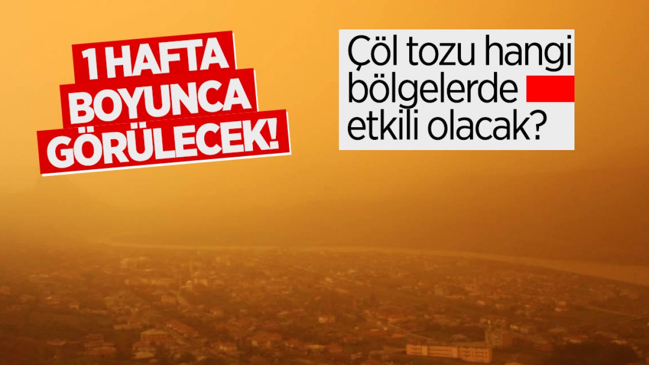 Türkiye Sahra Çölü'nden taşınan tozun etkisi altında. Çöl tozu kronik hastalıkları olanları olumsuz etkiliyor. Özellikle de kalp ve akciğer hastalıkları olanları. Uzmanlar, Türkiye'nin 1 hafta boyunca Afrika üzerinden gelen çöl tozunun etkisi altında kalacağını belirtiyor. Çöl tozu etkisi Türkiye'nin farklı bölgelerinde ise günden güne değişiyor. İç Anadolu bölgesinde pazar ve pazartesi günü çöl tozunun etkili olması bekleniyor.