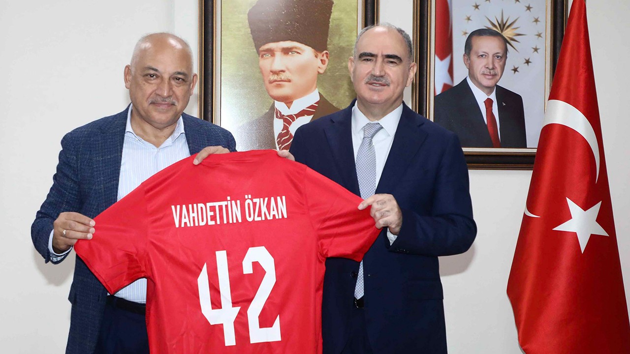 Türkiye Futbol Federasyonu Başkanı Mehmet Büyükekşi, TFF Genel Sekreteri Taner Senseven ve beraberindeki heyet Vali Vahdettin Özkan’ı makamında ziyaret etti.