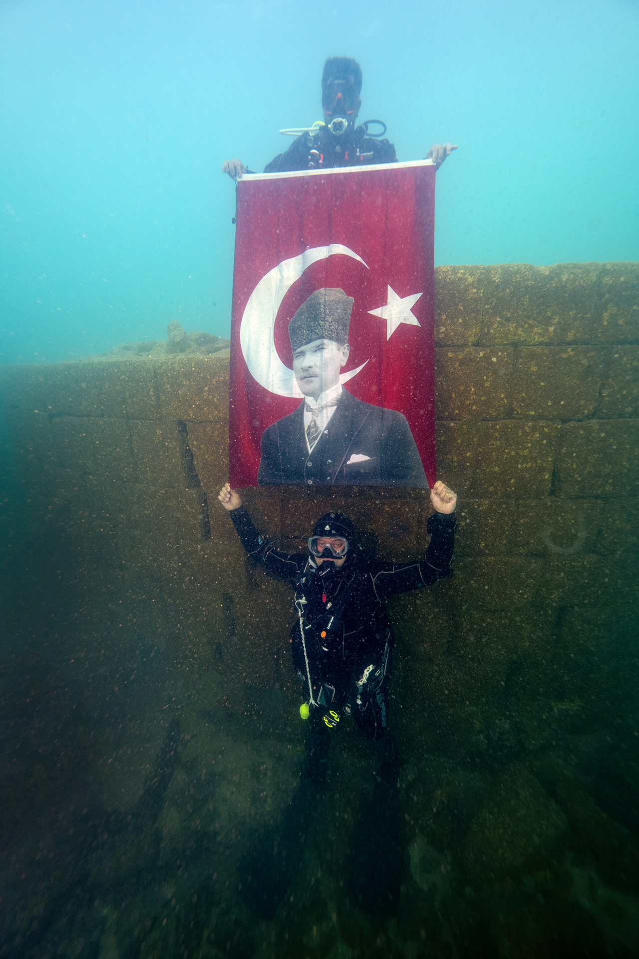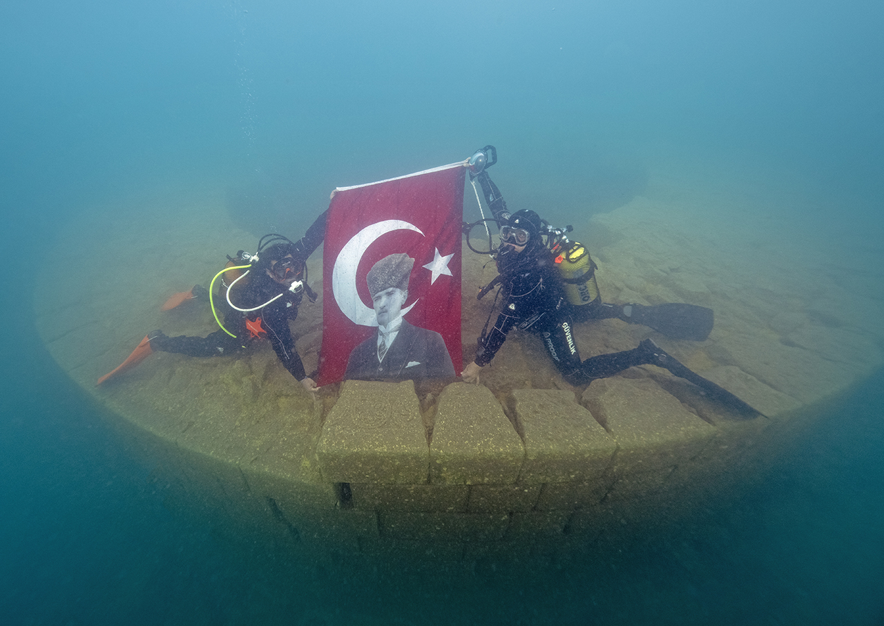 Su altı görüntü yönetmeni ve belgesel yapımcısı Tahsin Ceylan, Sahil Güvenlik Komutanlığı Dalış Emniyet Güvenlik ve Arama Kurtarma (DEGAK) ekibi ile dalgıçlar, Cumhuriyet'in 101. yıl dönümü dolayısıyla Van Gölü'nde dalış yaptı, Türk bayrağı açtı.