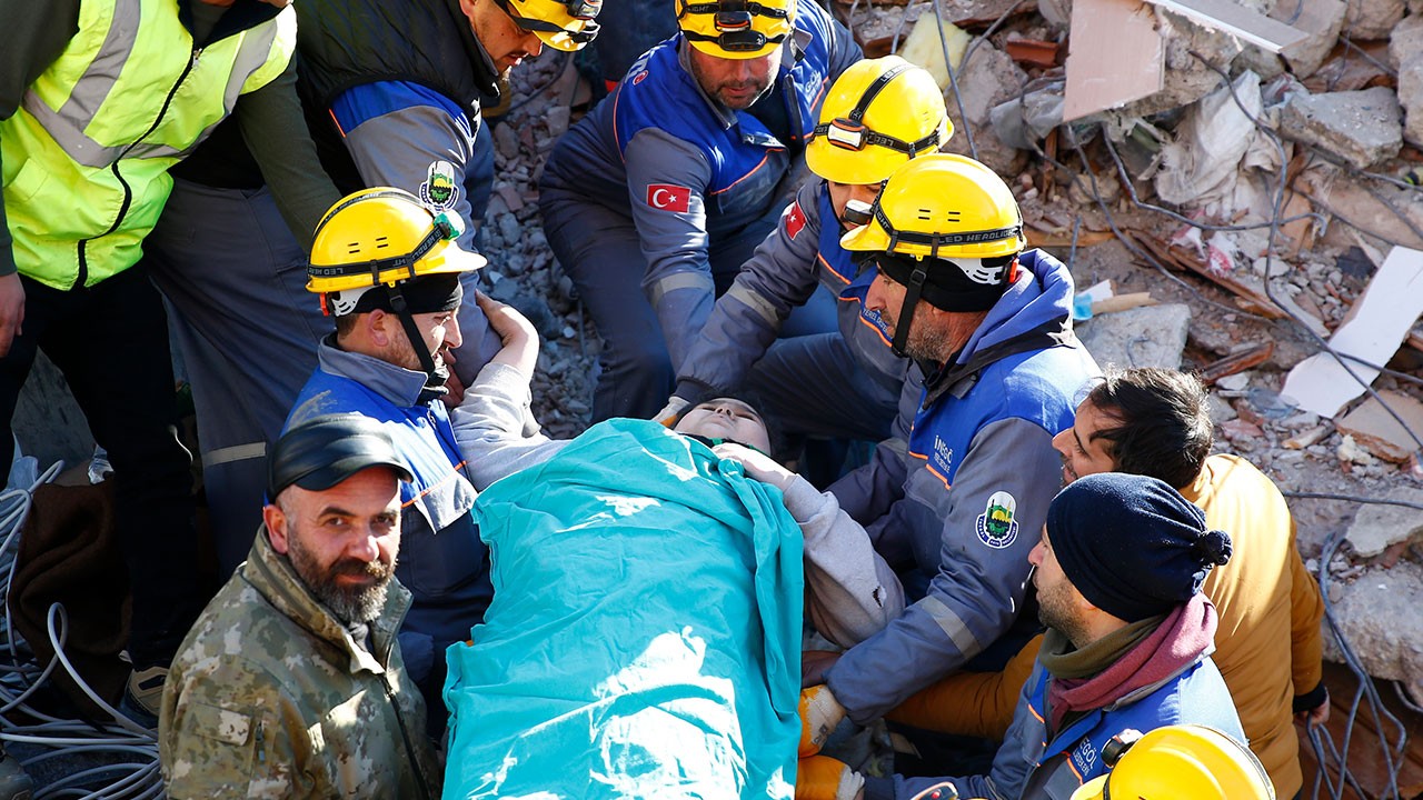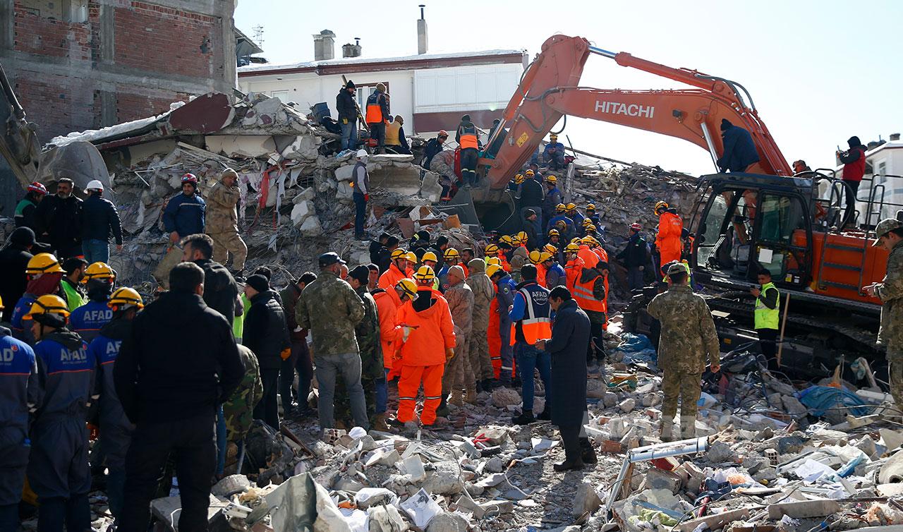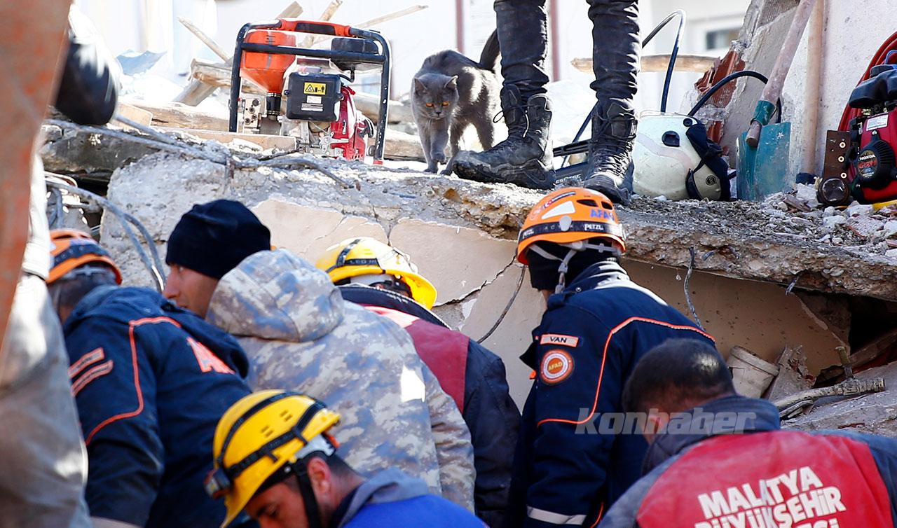 Kahramanmaraş merkezli 7,7 ve 7,6 büyüklüğündeki depremlerde Malatya'da yıkılan binaların enkazında AFAD, UMKE, itfaiye, 112 Acil Sağlık, polis ve askerlerin arama kurtarma çalışmaları sürüyor.
