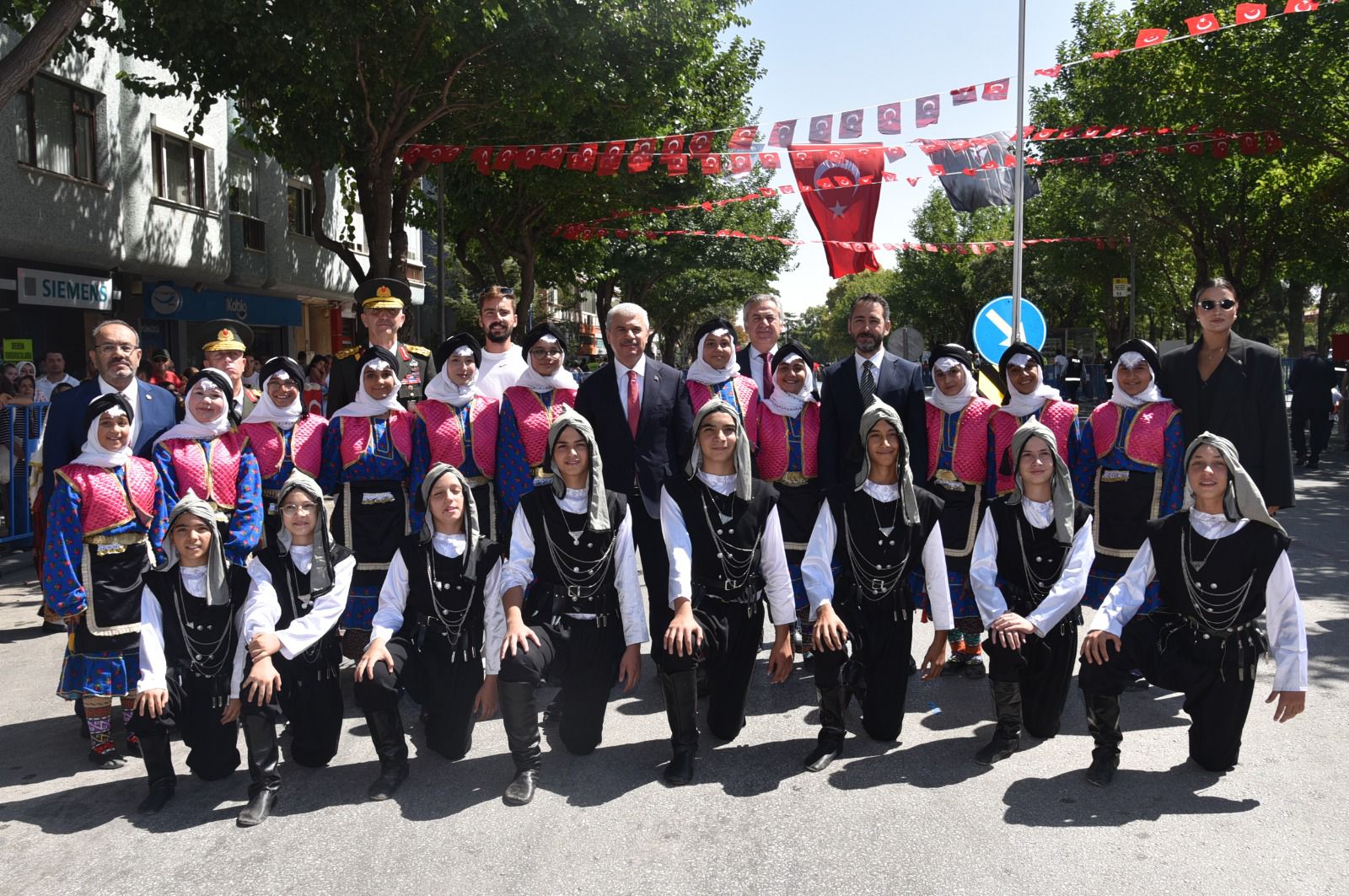 Büyük bir gurur ve coşkuyla kutlanan 30 Ağustos Zafer Bayramı'nın 103'üncü Yıl dönümü tören programında Karatay Şehit Azam Güdendede Anadolu Lisesi, Meram Konya Lisesi, Selçuklu Osman Nuri Hekimoğlu Anadolu Lisesi öğrencileri günün anlam ve önemini ifade eden şiirler okudu. Selçuklu Mustafa Bülbül Ortaokulu ve Selçuklu Cahit Zarifoğlu İlkokulu öğrencilerinin ise halk oyunları gösterisi sunduğu tören programı esnasında gerçekleştirilen muharip uçak geçişi de ilgiyle takip edildi.