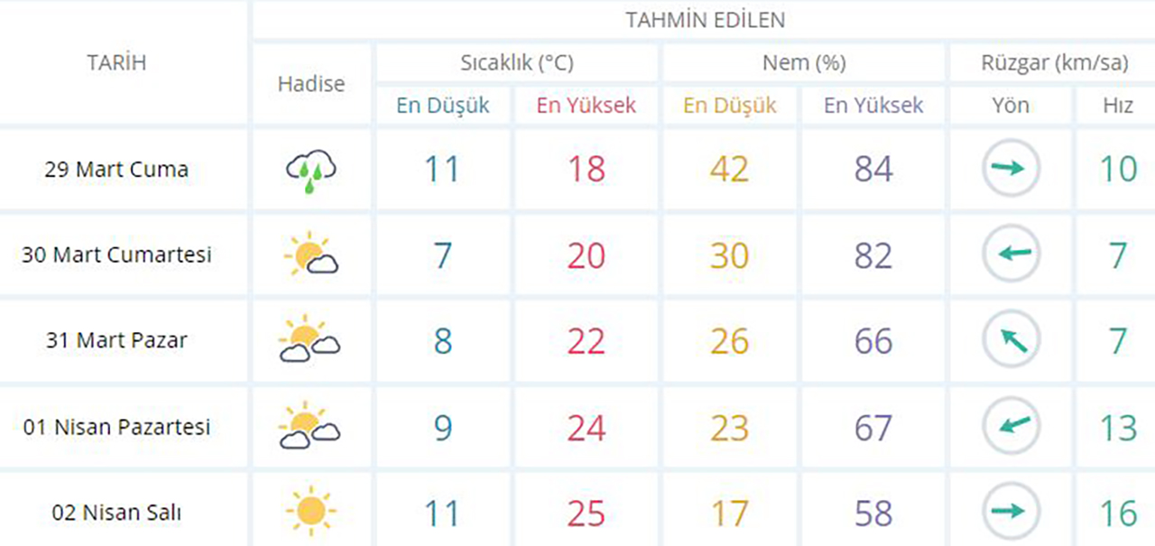 İŞTE KONYA'DA 5 GÜNLÜK TAHMİN