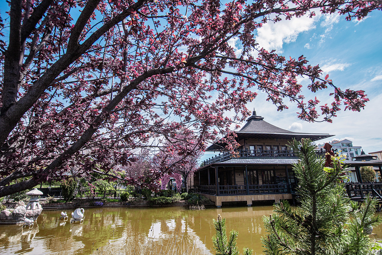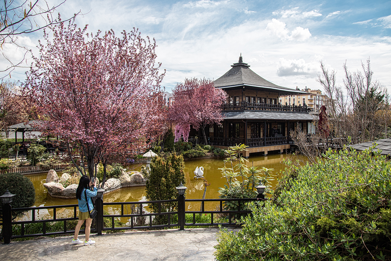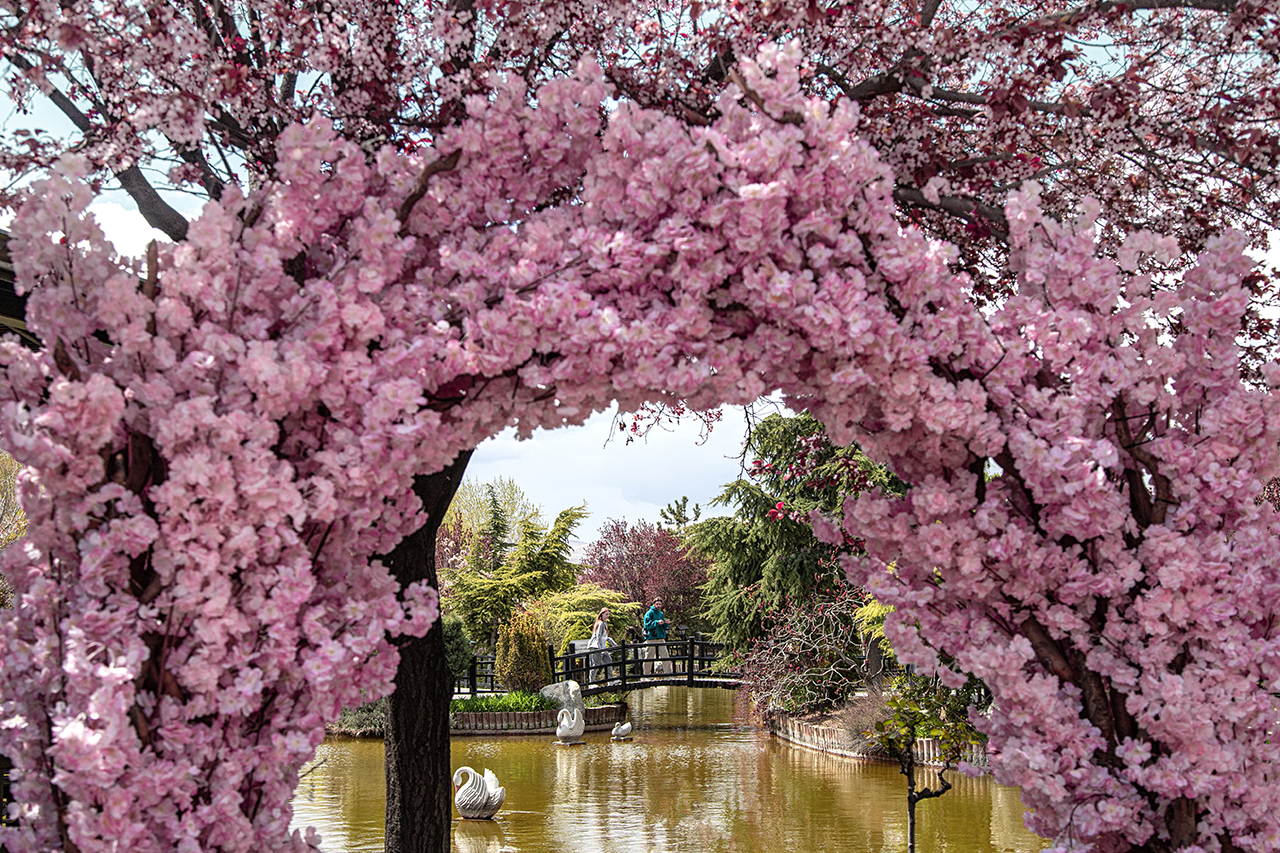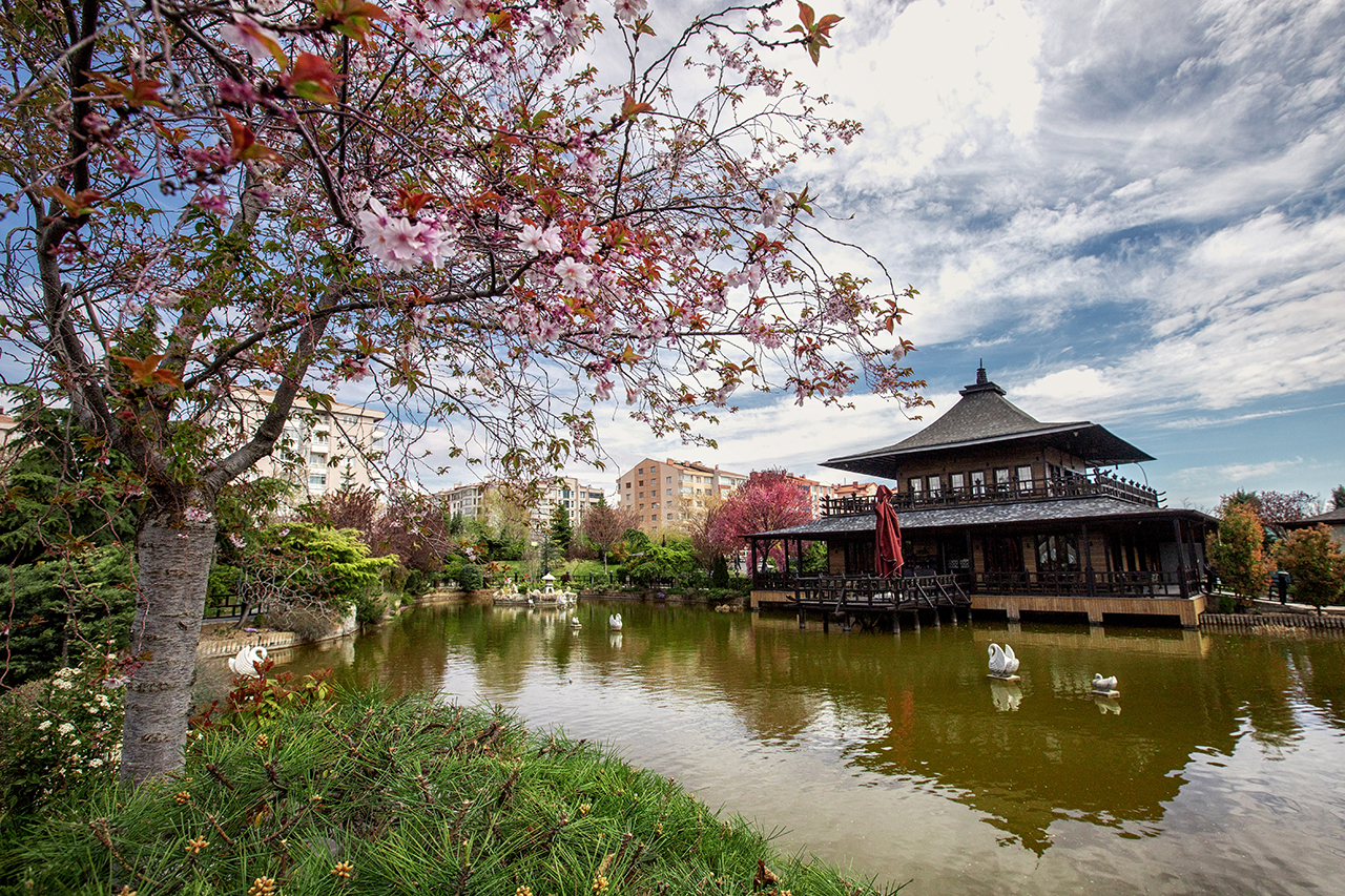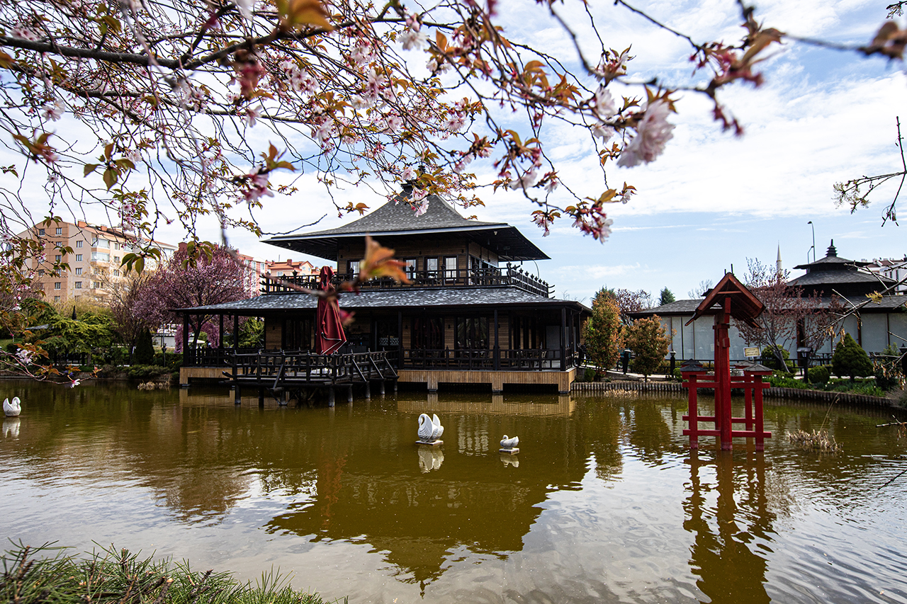 Yaklaşık 36 bin metrekarelik alanda yapılan Japon Kyoto Parkı, ilkbahar mevsiminin renklerine büründü.