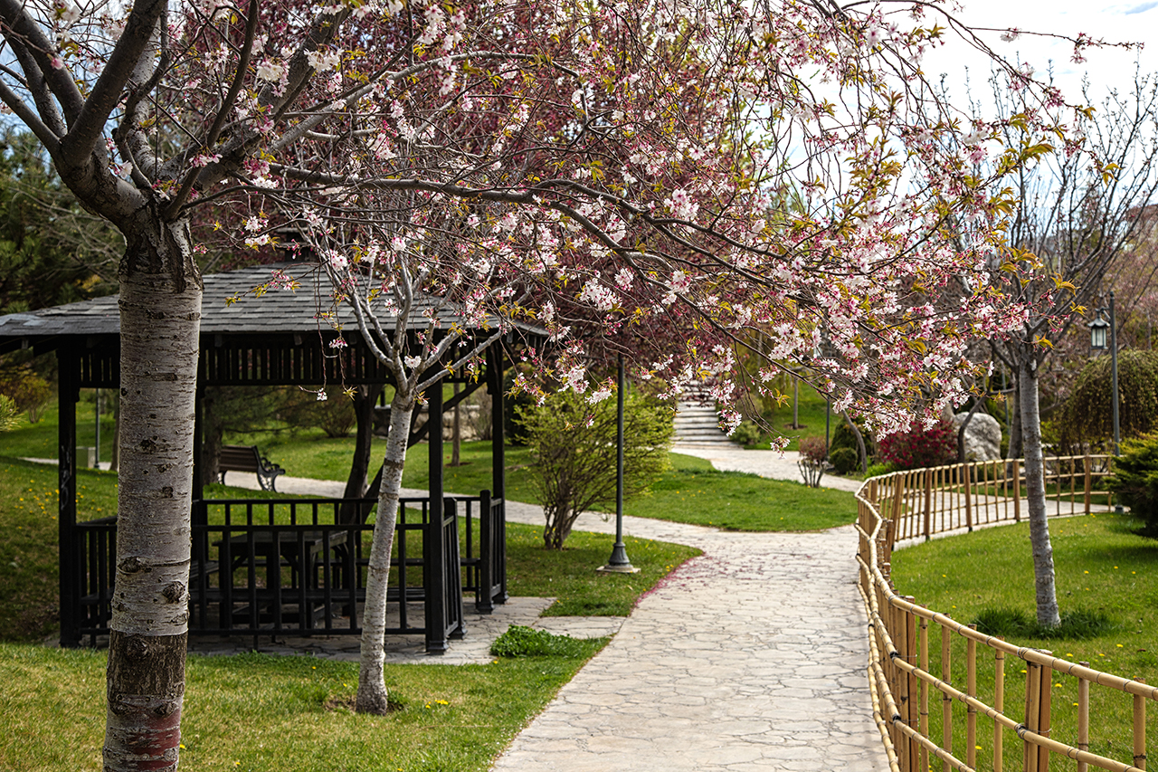 Konya ile Japonya'nın Kyoto şehri arasında kardeşlik ilişkilerinin geliştirilmesi amacıyla Büyükşehir Belediyesince yaptırılan 36 bin metrekarelik Japon Kyoto Parkı, ilkbahar mevsiminin renklerine büründü.