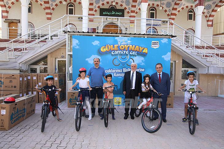Konya Büyükşehir Belediye Başkanı Uğur İbrahim Altay, “Güle Oynaya Camiye Gel” projesi kapsamında Bosna Hersek Mahallesi Yunus Emre Camii, Akabe Mahallesi Karbel Erkam Camii ile Gödene TOKİ Hicret Camii’nde 40 gün boyunca sabah namazlarını camide kılan çocuklar için düzenlenen bisiklet dağıtım programlarına katıldı.