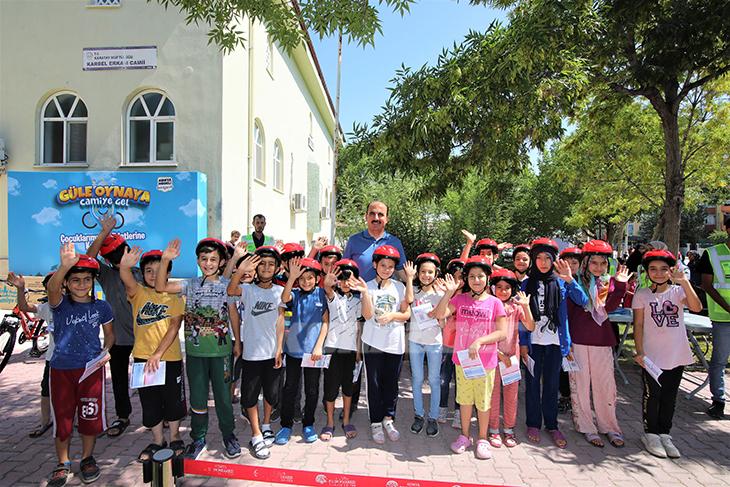 BİSİKLETLERİNE KAVUŞAN ÇOCUKLAR MUTLU OLDUProje dolayısıyla Konya Büyükşehir Belediye Başkanı Uğur İbrahim Altay’a teşekkür eden çocuklar da bisikletlerine kavuşmanın mutluluğunu yaşadı.