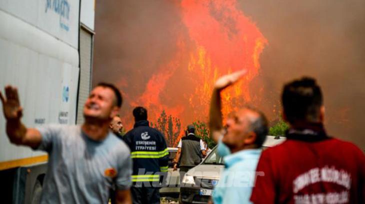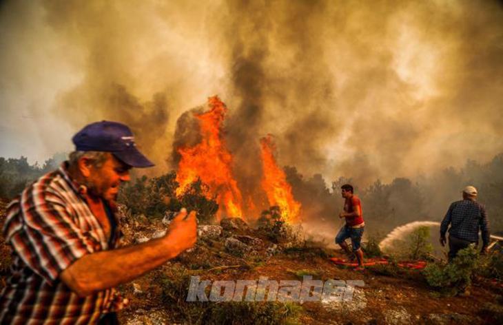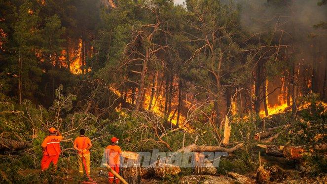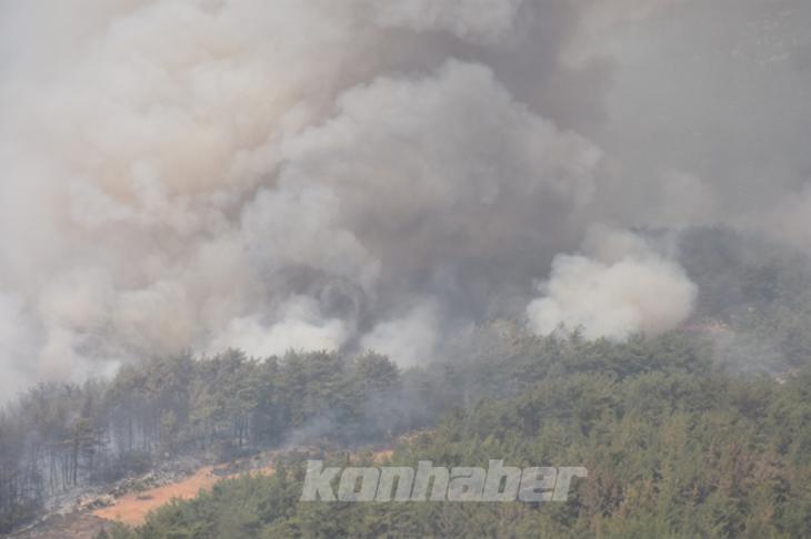 5 uçak 16 helikopter desteği ile alevleri söndürmeye çalışan 4 bini aşkın personele vatandaşlar da yardım ediyor.