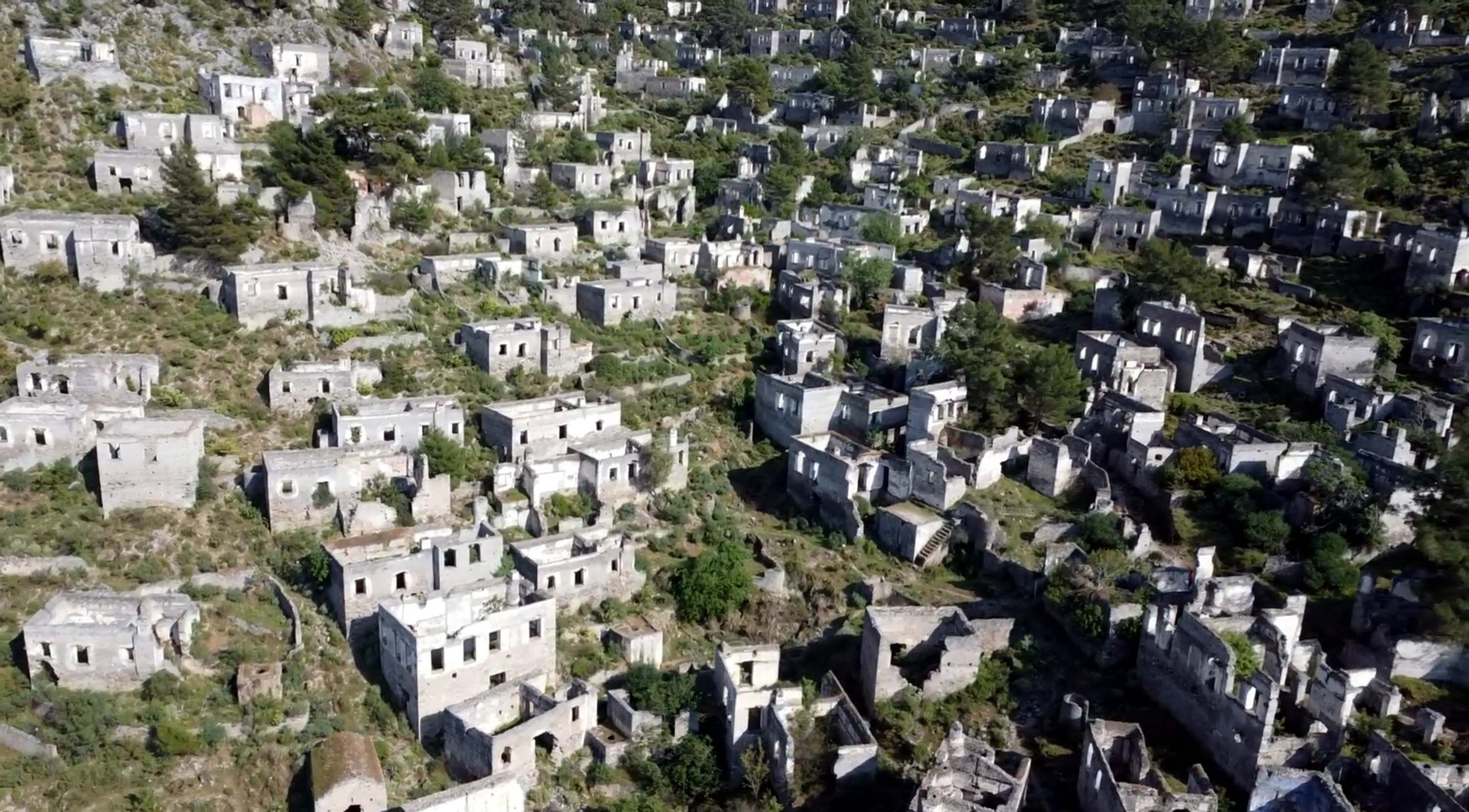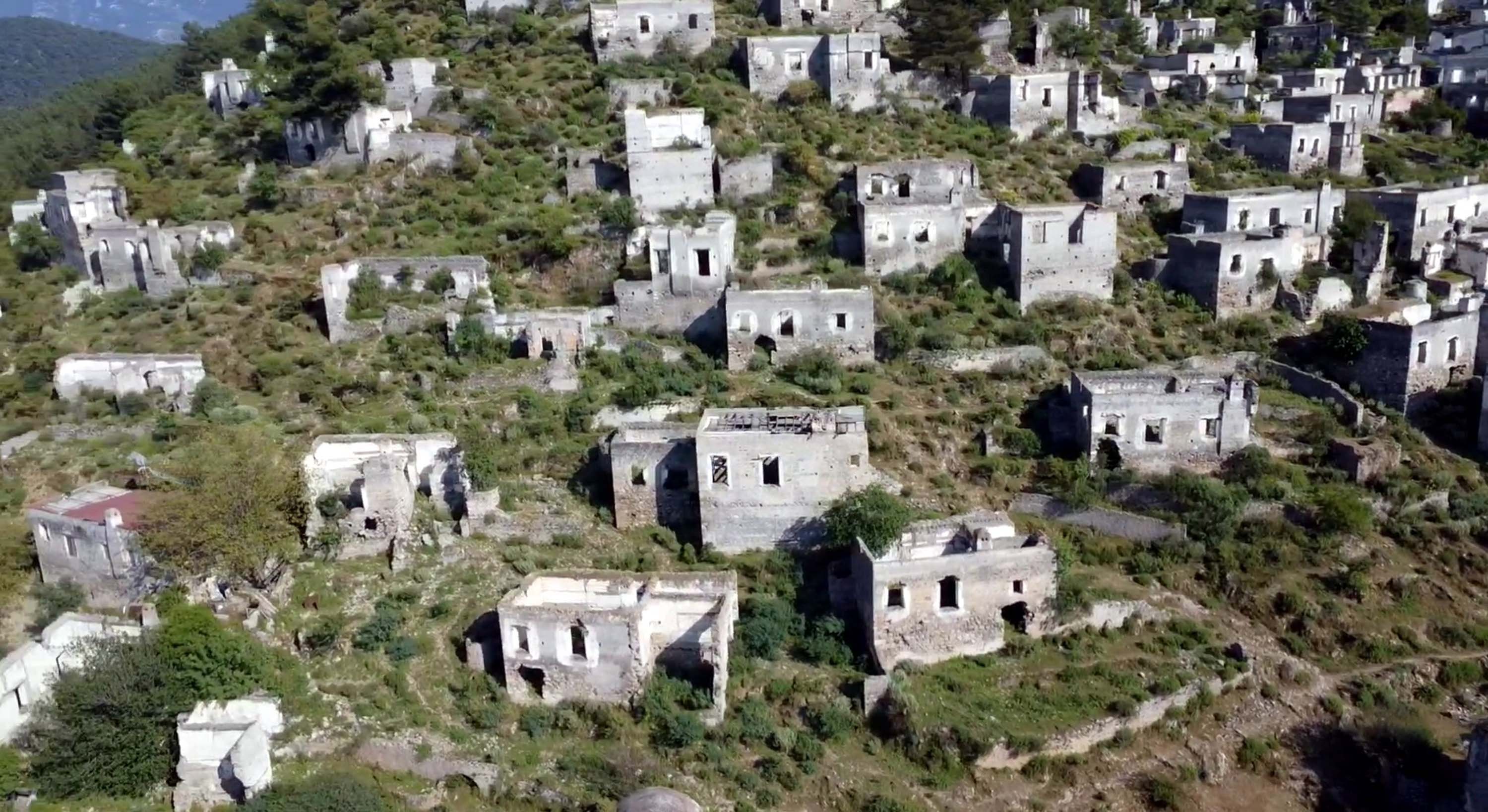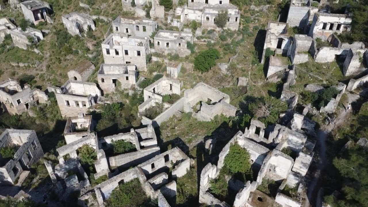 Muğla'nın Fethiye ilçesinde, 'hayalet köy' olarak bilinen ve 67 yıl önce terk edilen Kayaköy, havadan dronla görüntülendi.