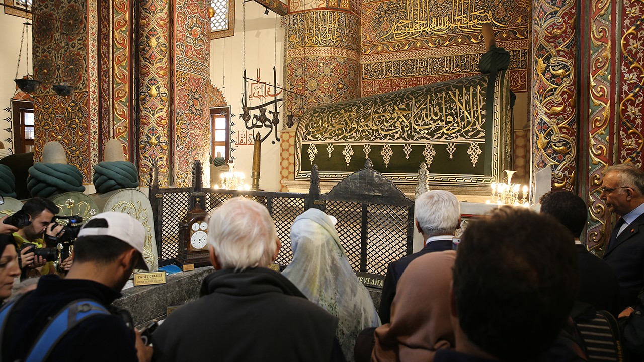 Karşılama töreninin ardından heyet, Hazreti Mevlana'nın sandukası önünde dua etti. Uluslararası Mevlana Vakfı öncülüğünde düzenlenen programa, İl Kültür ve Turizm Müdürü Abdüssettar Yarar ile Kültür ve Turizm Bakanlığı Konya Türk Tasavvuf Müziği Topluluğu Müdürü ve Postnişin Fahri Özçakıl da katıldı.