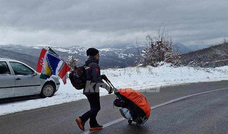 Beganovic, "Yolculuk için 6 ay hazırlandım. Hava şartlarına bağlı olarak günlük 35 ila 60 kilometre yol yürüyorum." dedi.