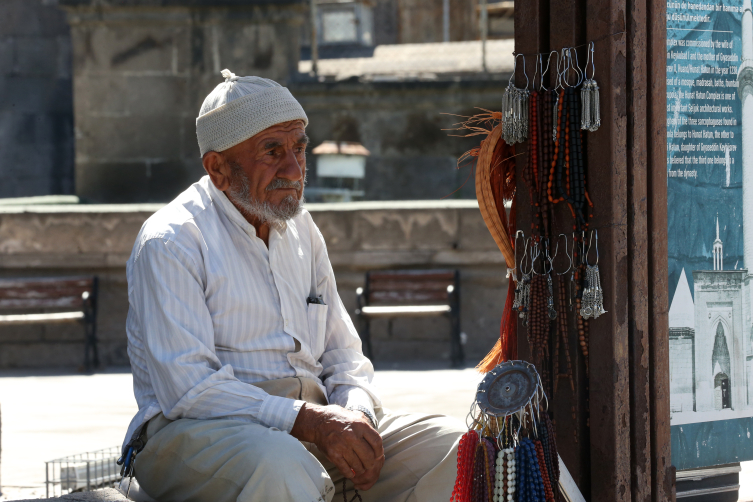 Her gün bisikletiyle geldiği tarihi Hunat Camii önünde tespit sattığını dile getiren Karaimam, asıl kazancının insan olduğunu ifade etti.