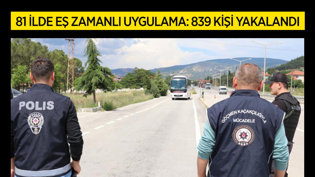 İçişleri Bakanlığı, 81 ilde düzensiz göçle mücadele kapsamında gerçekleştirilen uygulamada 839 düzensiz göçmen yakalandığını, 2'si yabancı uyruklu 17 organizatörün gözaltına alındığını duyurdu.