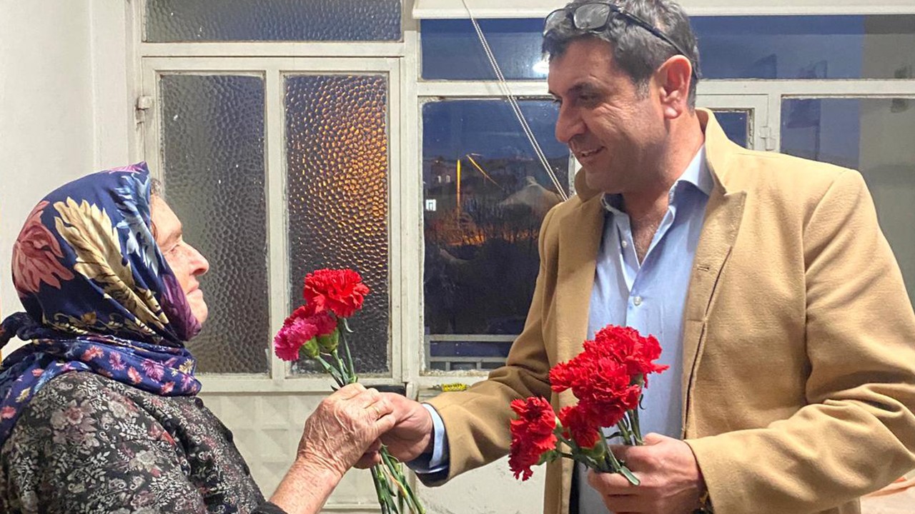 Başkan Tutal ve eşi Melek Tutal, şehit anneleri ve eşlerini, tarım işçilerini ziyaret ederek karanfil dağıttı.