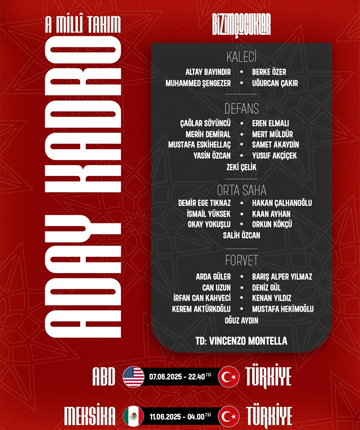 A Milli Takım, Amerika ve Meksika ile oynayacağı hazırlık maçlarının aday kadrosunu açıkladı.