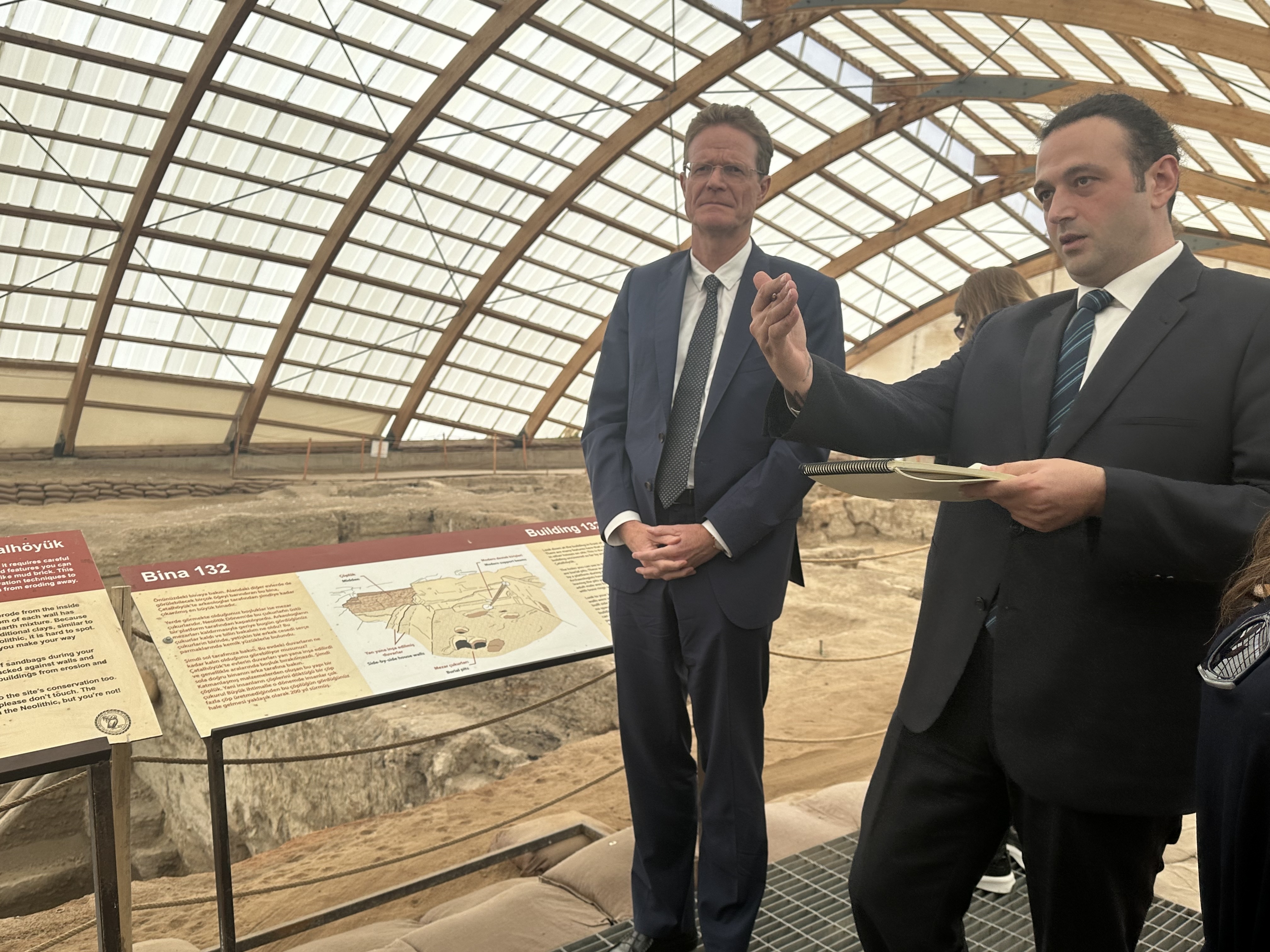 Çatalhöyük kazı alanında incelemelerde bulunan Meyer-Landrut, yetkililerden bilgi aldı.