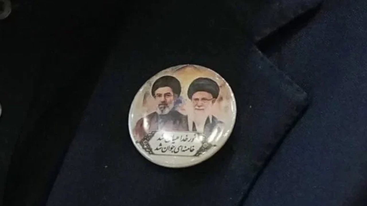 İran heyetinin taktığı rozetlerde Ali Hamaney ve oğlu Mücteba Hamaney'in fotoğraflarının olduğu görüldü.