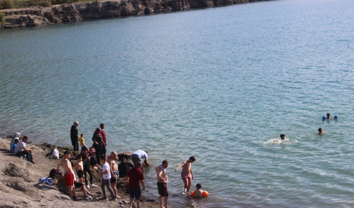 Göle yakın il ve ilçelerden gelen çok sayıda ziyaretçi, sıcak havada gölün soğuk sularında önce yüzüp, ardından piknik yapıp, mangal yaktı.